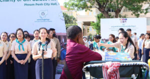 Phnom Penh: According to a report by the General Department of National Radio, on April 12, 2026, Her Excellency Dr. Pech Chanmon Hun Manet, Commissioner General of the Cambodian Women’s Sports Association, presided over the Cambodian Women’s Sports Charity Ceremony, where she met with and presented charitable gifts from the Cambodian Women’s Sports Association to members of the Cambodian Tricycle Foundation before the traditional Khmer New Year at Phnom Penh City Hall.